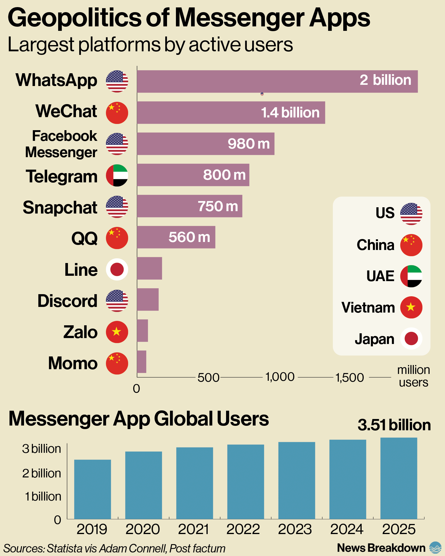 - Marketing: the messenger is heavily promoted with state-backed funding.