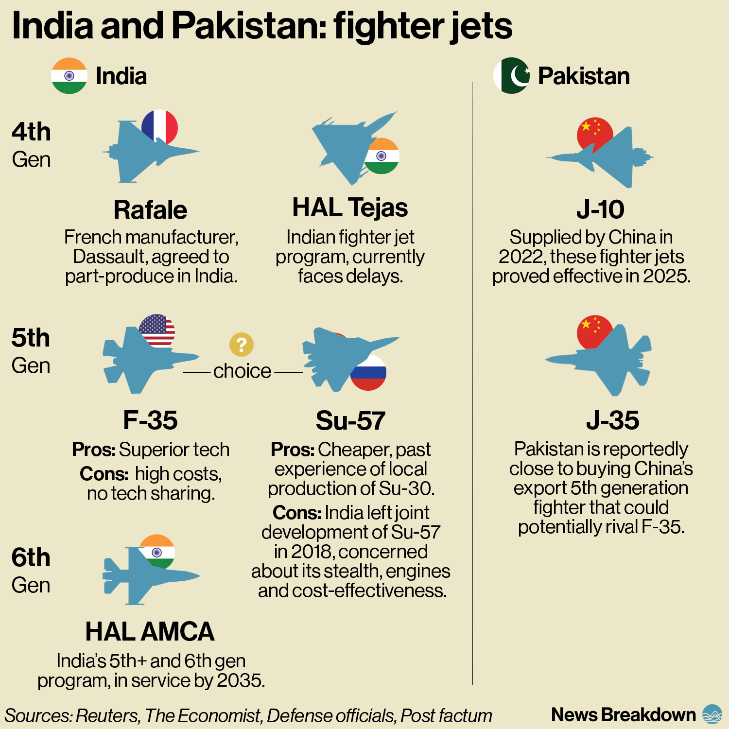 - Fighter jet competition: India is now looking to speed up its fighter jet fleet modernisation, looking to buy a 5th generation jet, such as the US-made F-35 or Russian Su-57, which India used to co-develop before leaving the program over quality concerns.