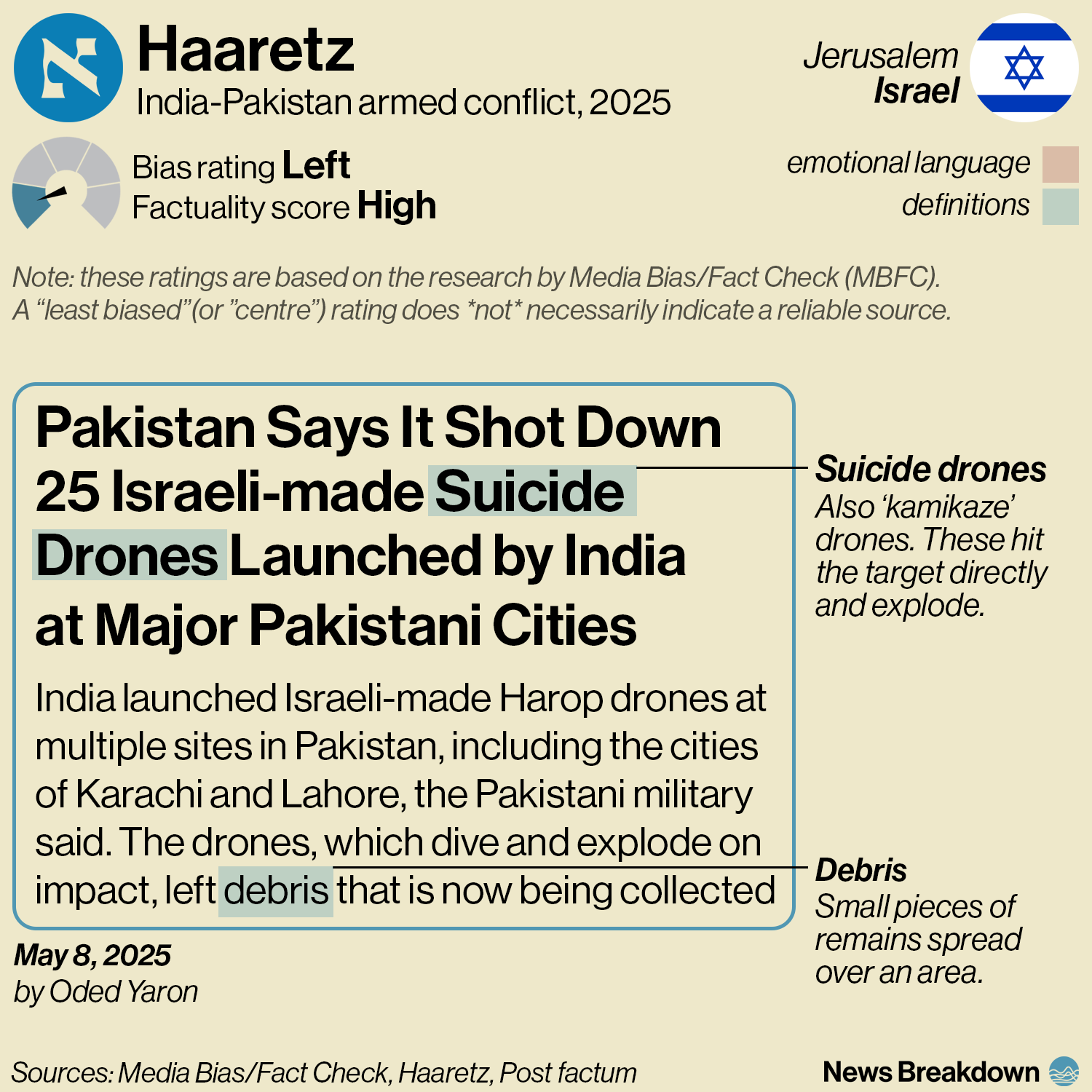 The article highlights Pakistan’s success in shooting down Israeli-made drones that were sent to some of its biggest cities, including Karachi and Lahore.