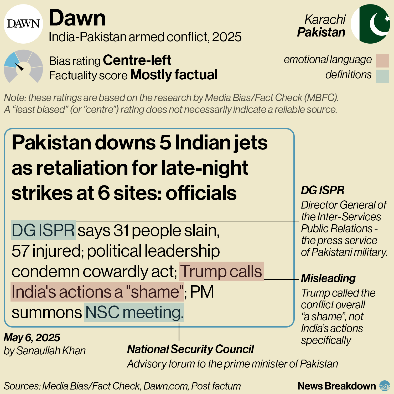 The outlet shows bias by mostly ignoring Pakistan’s version of events.Â