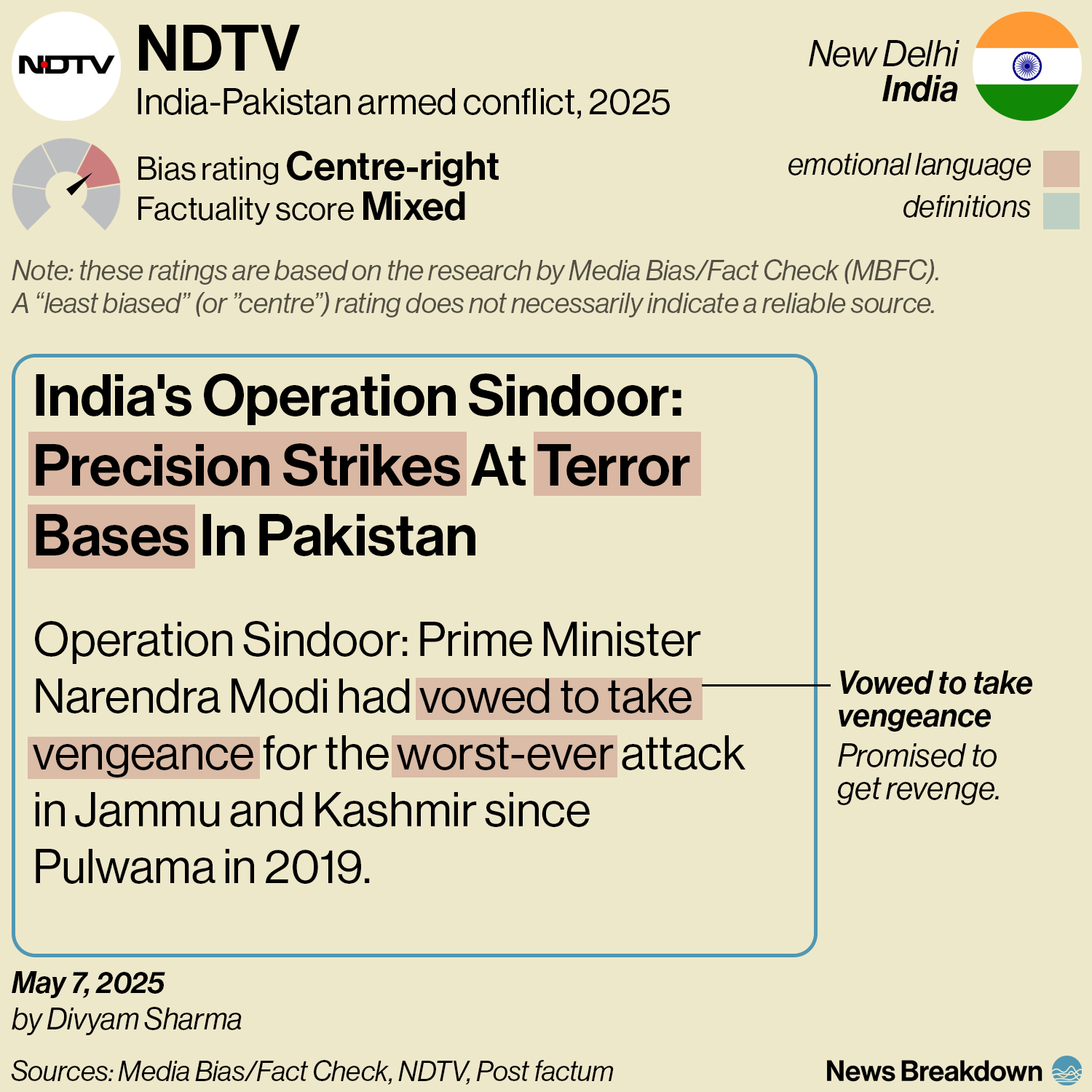 NDTV focuses on the reasons for India’s strikes by repeatedly referring to the terrorist attack that provoked Operation Sindoor.Â